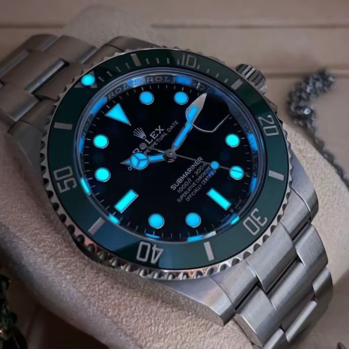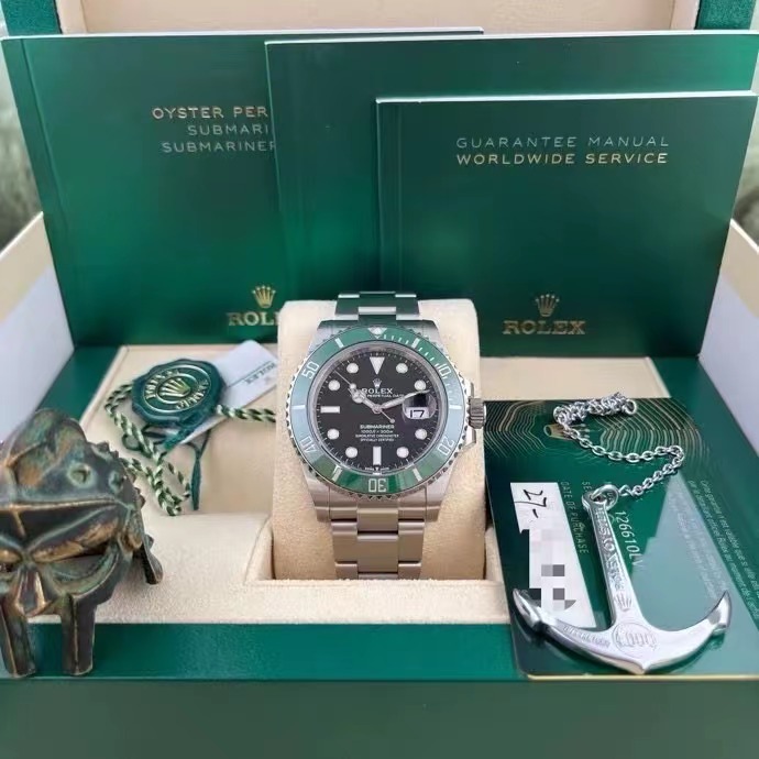 The New Submariner Date “Starbucks” Men’s diving watch M126610LV-0002 is an authentic Swiss-made watch which features a brushed with polished 904L Oystersteel stainless steel case and brushed 904L Oystersteel stainless steel oyster bracelet with folding Oysterlock safety clasp with Glidelock extension system. The black dial is adorned with luminescent hands and hour markers and is encompassed by a unidirectional rotating green Cerachrom ceramic bezel insert with engraved 60 minute scale and graduations on bezel. This striking watch is driven by COSC Superlative Chronometer Certified Self-winding automatic movement with 70 hour power reserve.